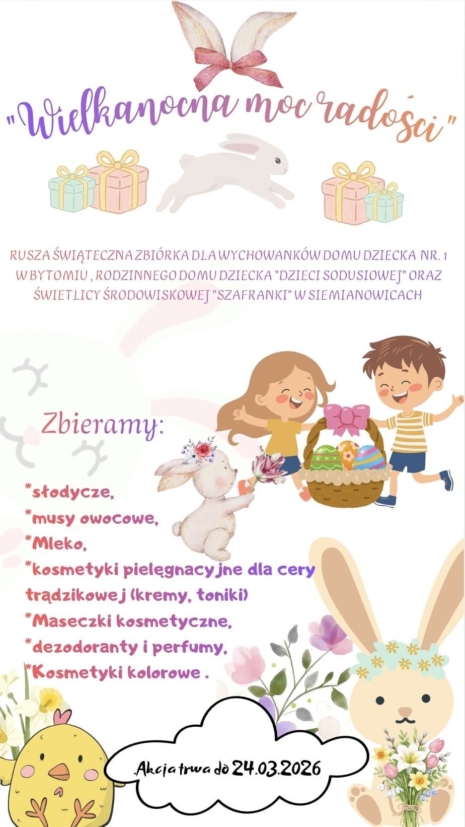 Trwa akcja Wielkanocna Moc Radości, dzięki, której ucieszą się przede wszystkim dzieci. Nasza aktywna grupa społeczników – z Joanną Świątek oraz Damianem Achtelikiem – zbiera produkty w tegorocznej edycji Wielkanocna Moc Radości dla podopiecznych:
