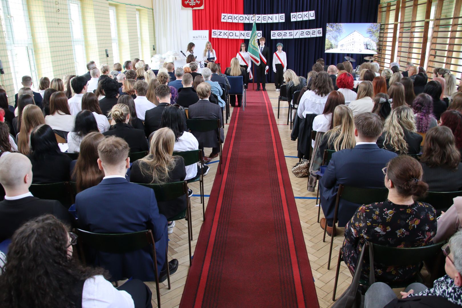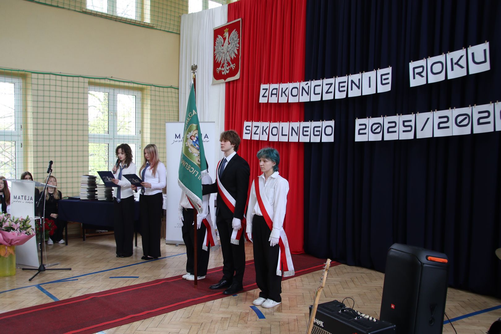 Muzyczna oprawa uroczystości w wykonaniu utalentowanych młodych ludzi z klas 3a i 3c doskonale spinała całość i stanowiła nostalgiczny kontrapunkt dla nominacji do nagród przyznanych przez społeczność szkoły, tzw. matejkowskich „Jaśków”, w kilku kategoriach „z przymrużeniem oka”. Wielu obecnym na uroczystości zakręciła się w oku łza, czy to radości, czy smutku. Jeszcze tylko pożegnania z wychowawcami, podziękowania dla pani z włoskiego czy pana z biologii i … już. Zakończenie klas 4 w LO to swoisty „rytuał przejścia”, moment zakończenia pewnego etapu życia, potem wszystko będzie inne. A jakie? Czas pokaże. A na razie cała Mateja trzyma mocno kciuki za jak najlepsze zdanie matury. Powodzenia!