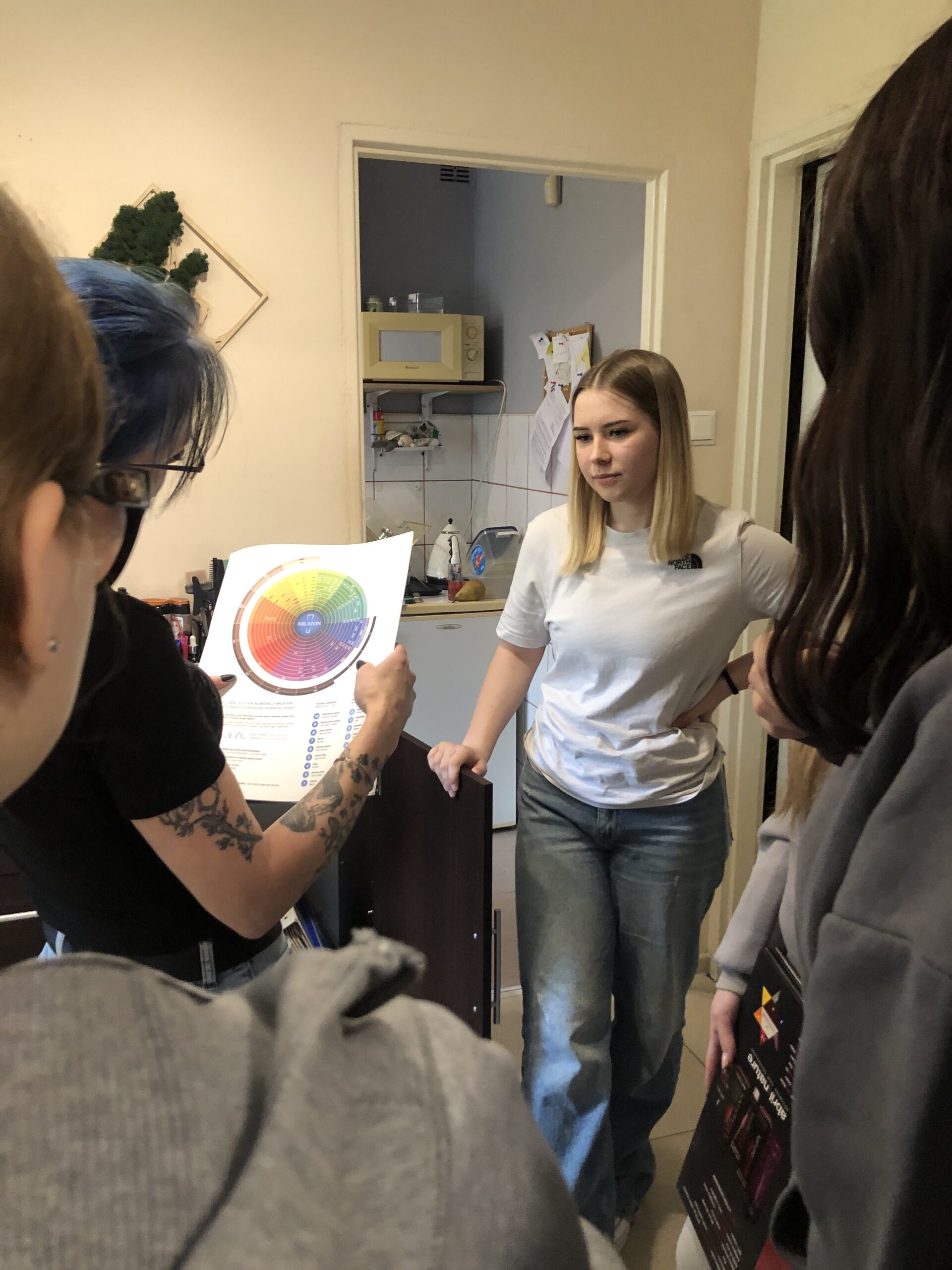 Gospodynią spotkania była Pani Agnieszka Całczyńska – fryzjerka z wieloletnim stażem, która z pasją opowiedziała o swojej drodze zawodowej. Uczennice miały możliwość wysłuchania historii jej rozwoju – od pierwszych kroków w zawodzie, przez zdobywanie doświadczenia, aż po prowadzenie własnego salonu. Szczególną uwagę zwróciła na znaczenie ciągłego doskonalenia umiejętności, śledzenia trendów oraz budowania relacji z klientami.