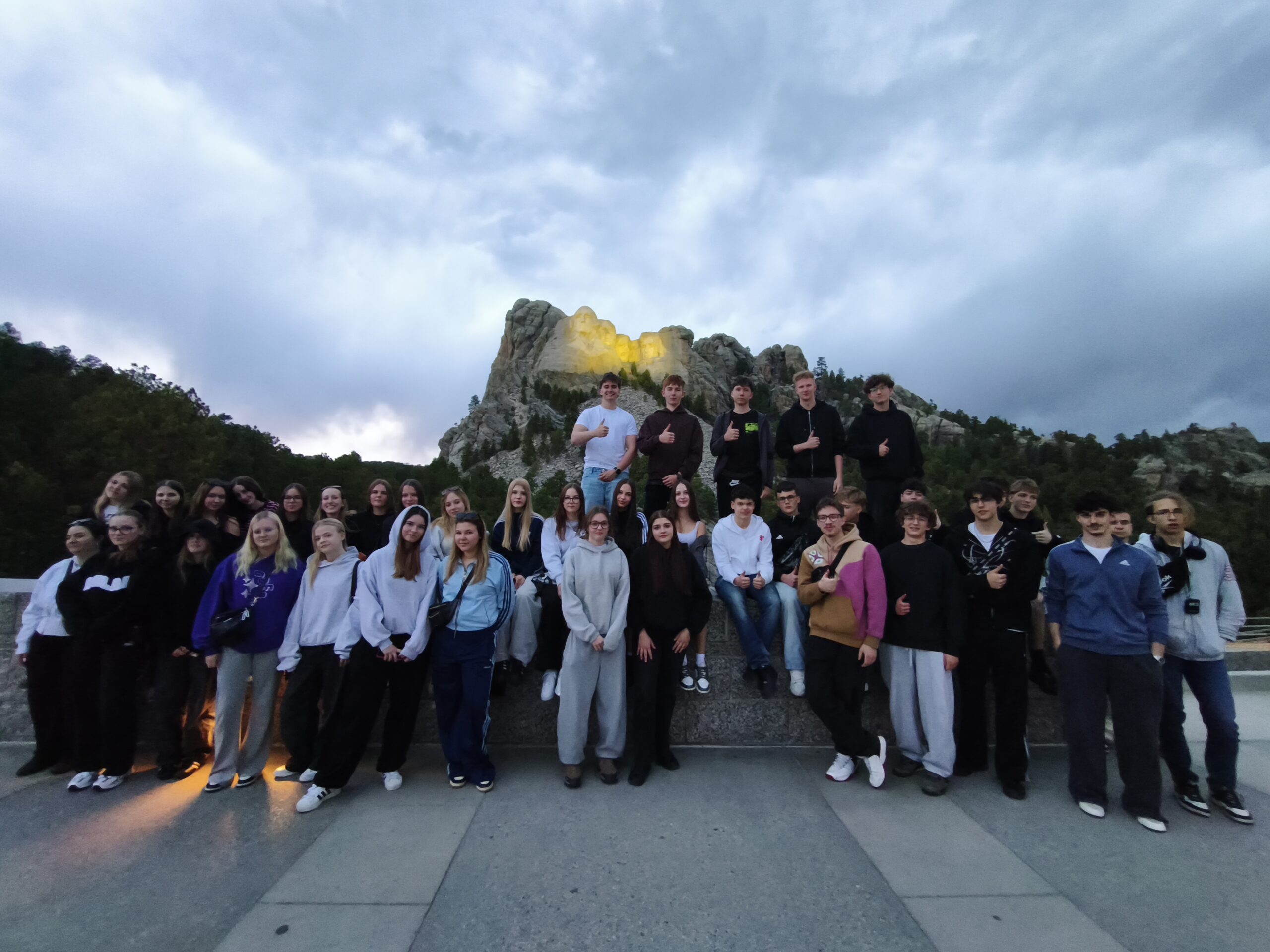 Wieczorem grupa dotarła do Mount Rushmore – monumentalnego pomnika czterech prezydentów USA. Oświetlone twarze przywódców wprowadziły wszystkich w atmosferę zadumy i refleksji nad historią kraju. W kolejnych dniach podróżnicy przemierzali Góry Skaliste, pokonując setki kilometrów i doświadczając zmieniających się warunków pogodowych – od słońca po śnieg.