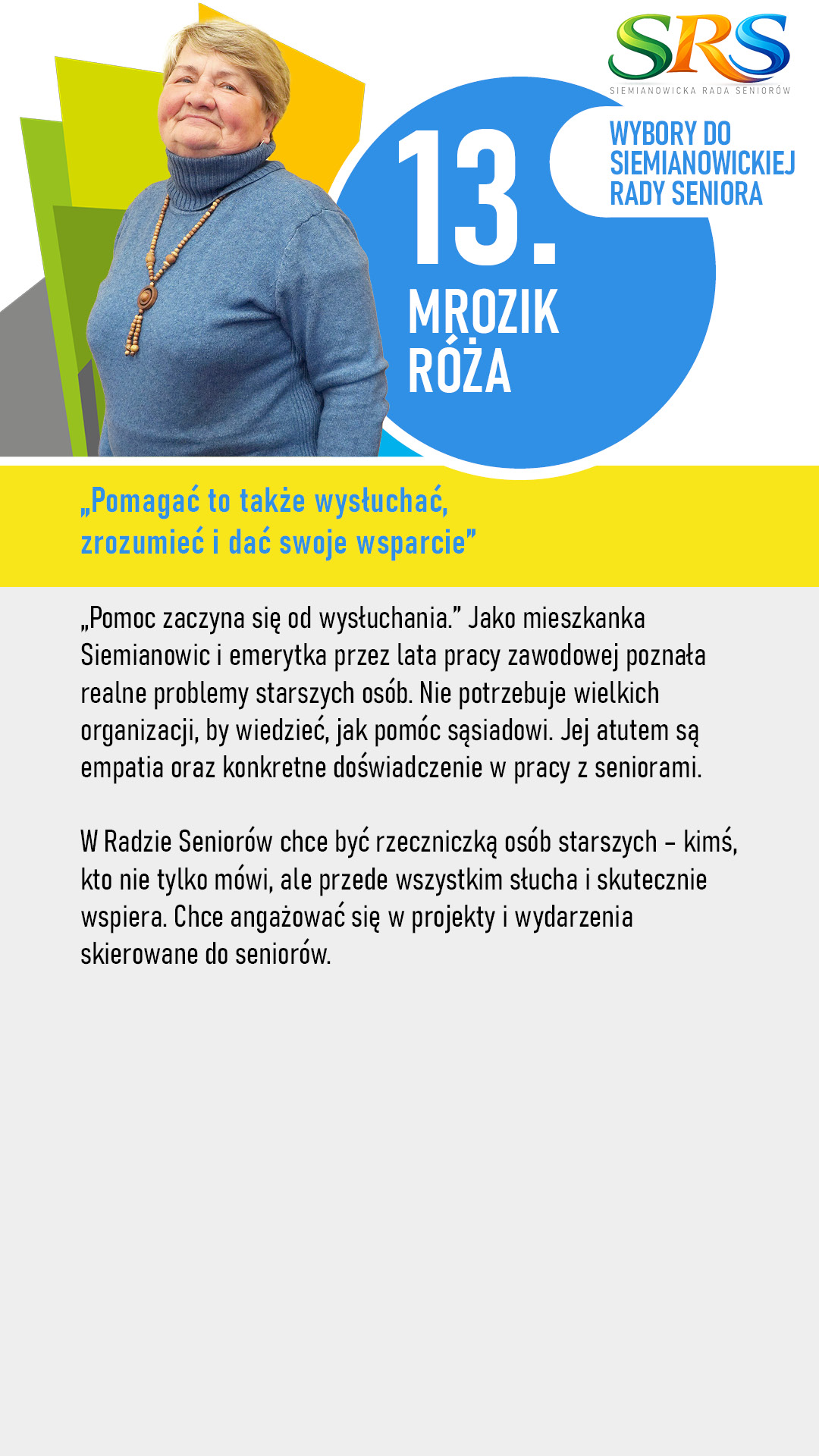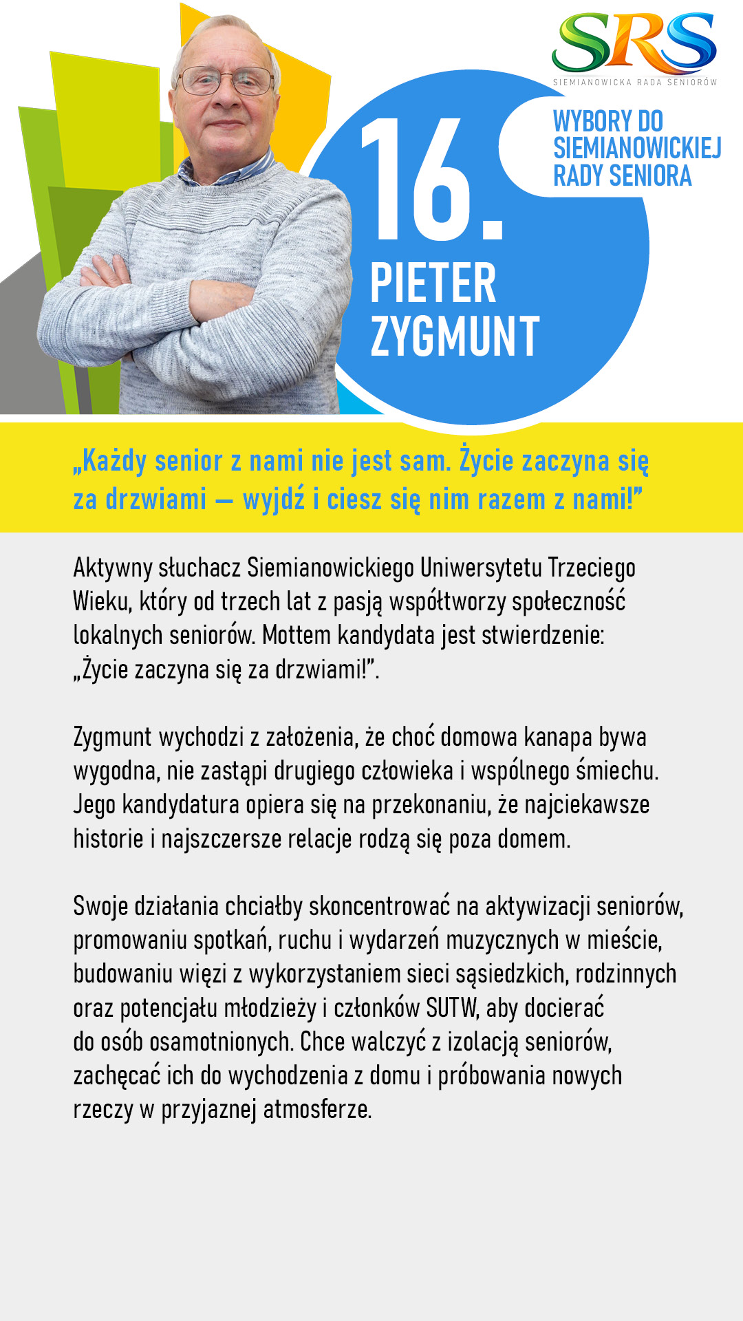 Silna Rada Seniorów to większa szansa na rozwój takich miejsc jak Centrum Wsparcia Profilaktyki i Zdrowia Seniora czy Klub Seniora. Obecnie miasto realizuje duże projekty z funduszy szwajcarskich – Państwa głos pomoże nam jeszcze lepiej dopasować te działania do realnych potrzeb mieszkańców.